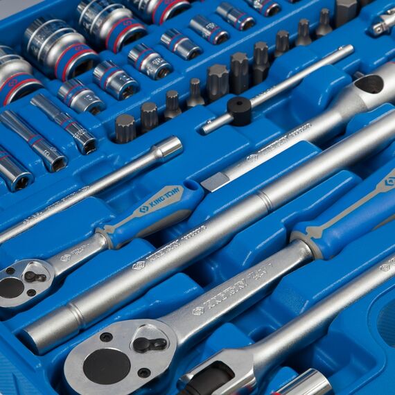 Набор KING TONY 7587SR укомплектован торцевыми головками и ключами размерностью дюймового стандарта: размеры выражены долями частей дюйма. Дюймовые ключи и головки вам пригодятся, если вы ремонтируете или используете технику американского производства.