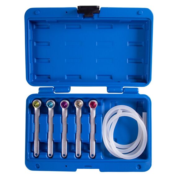 Набор используется для прокачки тормозных суппортов любых транспортных средств, позволяет работать с крепежом с повреждёнными гранями.