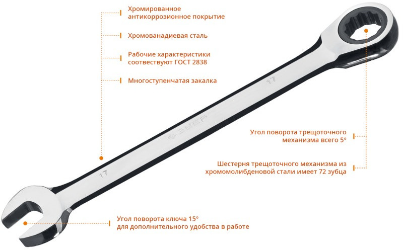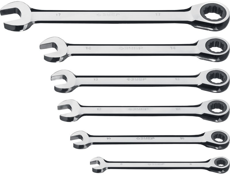 Набор комбинированных гаечных ключей трещоточных Зубр 27074-H6 6 шт, 8 - 17 мм