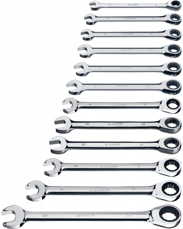 Набор комбинированных гаечных ключей трещоточных Зубр 27075-H12 12 шт, 8 - 22 мм [27075-H12_z01]
