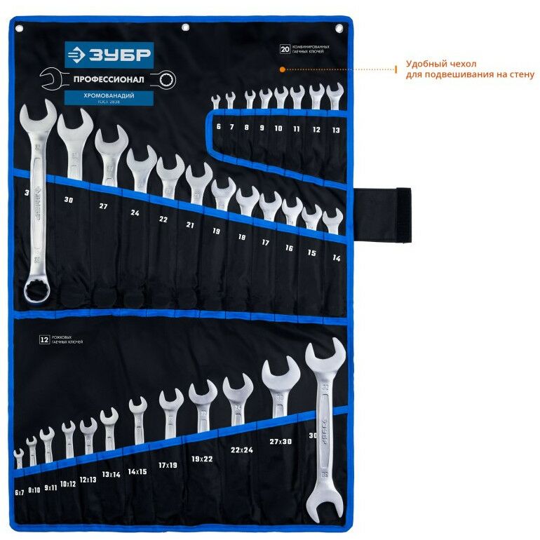 Набор комбинированных и рожковых гаечных ключей Зубр 27086-H32 32 шт, 6 - 32 мм