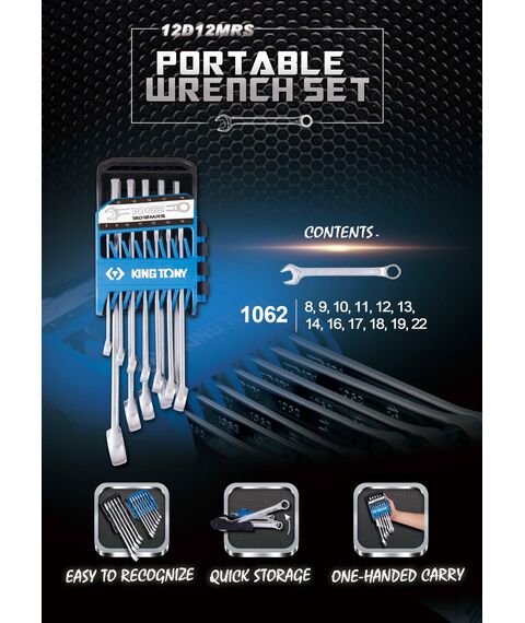 Набор комбинированных ключей King Tony 12D12MRS 8-22 мм, 12 предметов