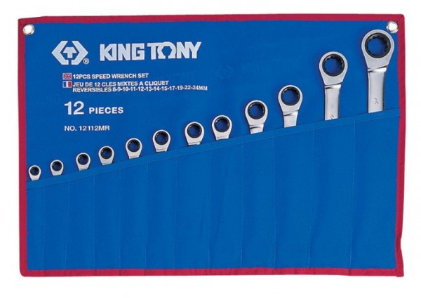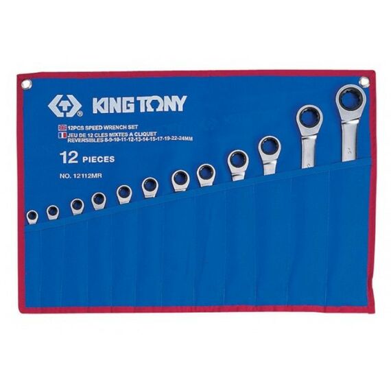 Набор комбинированных трещоточных ключей King Tony 12112MRN 8-24 мм, чехол из теторона, 12 предметов