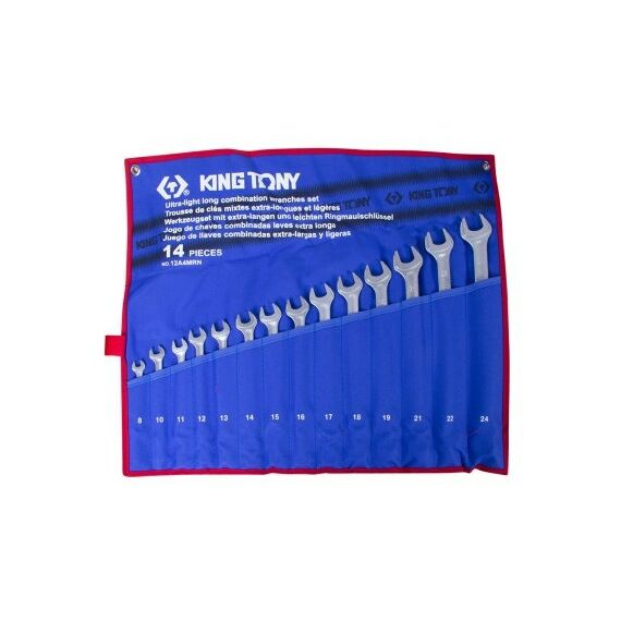 Набор комбинированных удлиненных ключей King Tony 12A4MRN 8-24 мм, чехол из теторона, 14 предметов