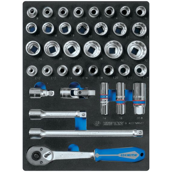 Набор торцевых головок King Tony 9-4037MRV01 1/2" с принадлежностями, двенадцатигранные, ложемент, 37 предметов