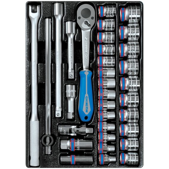 Набор торцевых головок King Tony 9-4333MR03 1/2" с принадлежностями, ложемент, 33 предмета