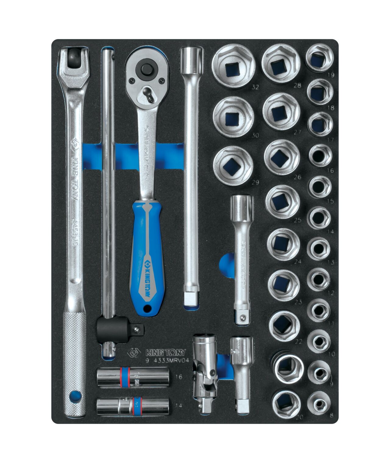 Набор торцевых головок King Tony 9-4333MRV04 1/2" с принадлежностями, шестигранные, ложемент, 33 предмета