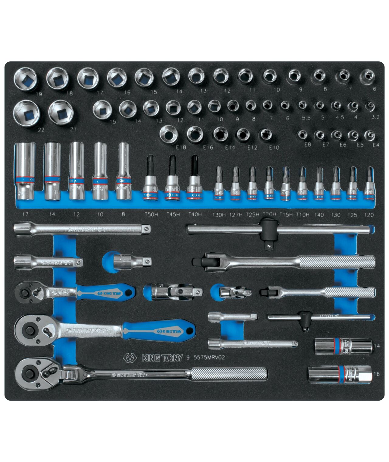 Набор торцевых головок King Tony 9-5575MRV02 1/4", 3/8" с принадлежностями, ложемент, 75 предметов