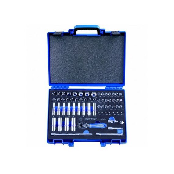Набор с инструментом торговой марки KING TONY включает в себя торцевые головки и принадлежности, предназначен для монтажа и демонтажа крепёжных узлов различных изделий, устройств и агрегатов.