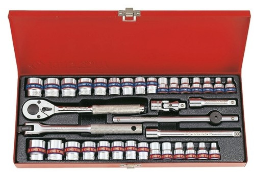 - Головки торцевые подробно: 3/8": 6, 7, 8, 9, 10, 11, 12, 13, 14, 15, 16, 17, 19, 20, 21, 22 мм; дюймовые 3/8": 1/4", 5/16", 11/32", 3/8", 7/16", 15/32", 1/2", 9/16", 19/32", 5/8", 11/16", 3/4", 13/16", 7/8"; удлинитель 3/8": 75, 150 мм; вороток с шарниром 3/8": 215 мм; вороток т-образный 3/8": 200 мм; трещетка 3/8": 32 зуба; карданный шарнир 3/8"