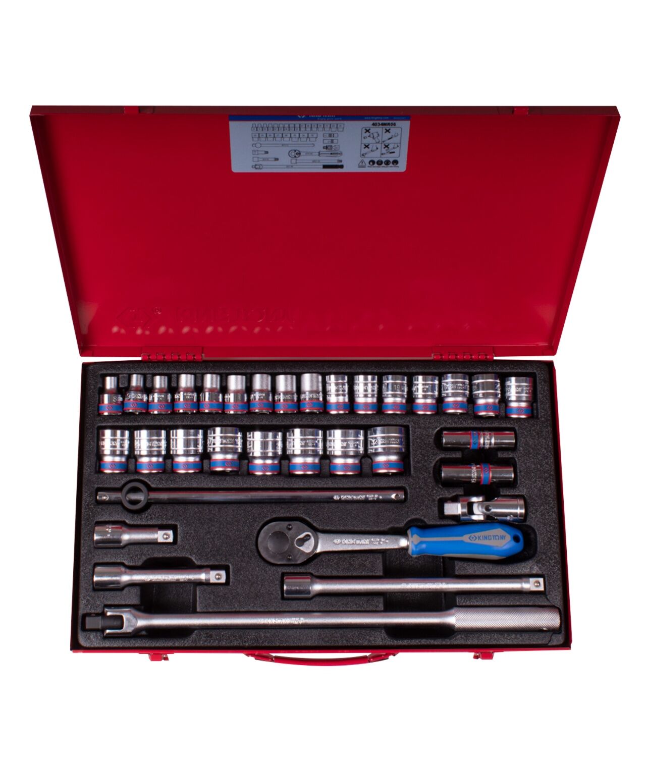 Набор торцевых головок с принадлежностями King Tony 4034MR06 1/2", двенадцатигранные, 8-32 мм, 33 предмета