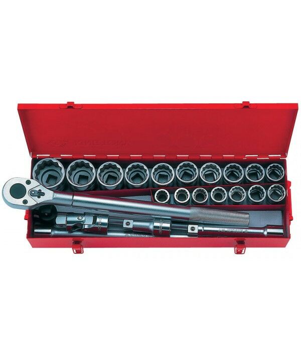 - Набор торцевых головок с принадлежностями 3/4", двенадцатигранные, 22-50 мм, 23 предмета.