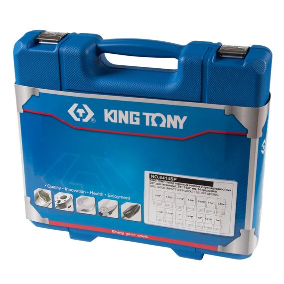 Набор ударных глубоких торцевых головок King Tony 6414SP 3/4", шестигранные, 3/4"-1-5/8" мм, 14 предметов