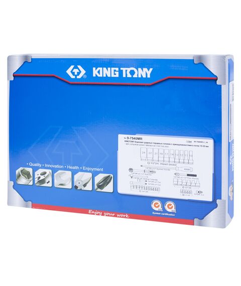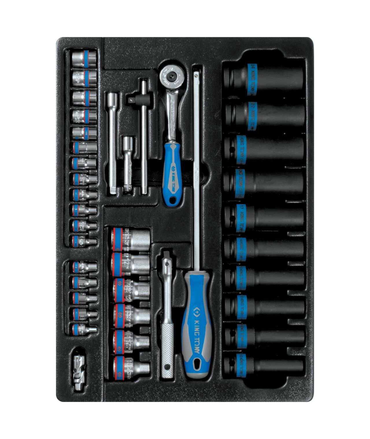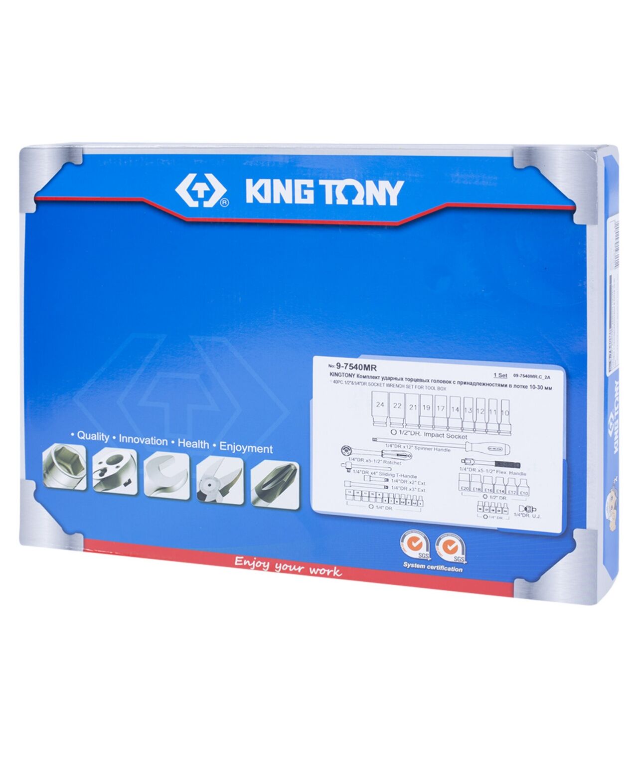 Набор ударных головок King Tony 9-7540MR 1/2" и торцевых головок 1/4" с принадлежностями, ложемент, 40 предметов