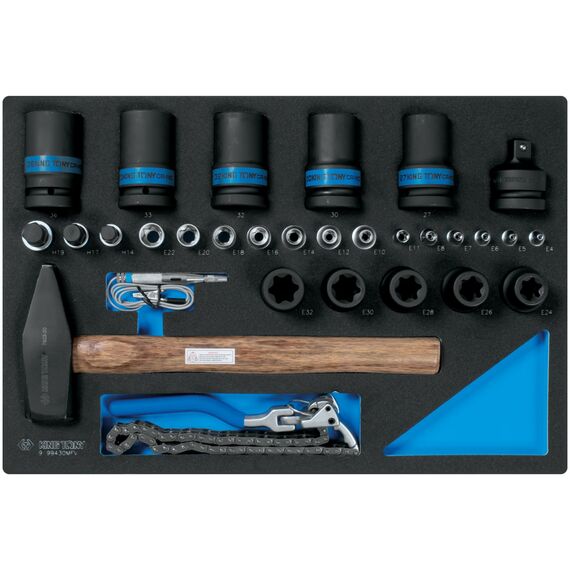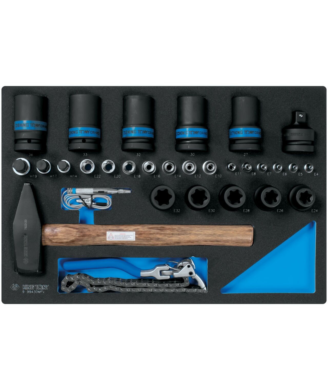 Набор ударных головок King Tony 9-99430MFV 1", головок Torx Е-стандарт, молоток, съемник, тестер, ложемент, 30 предметов