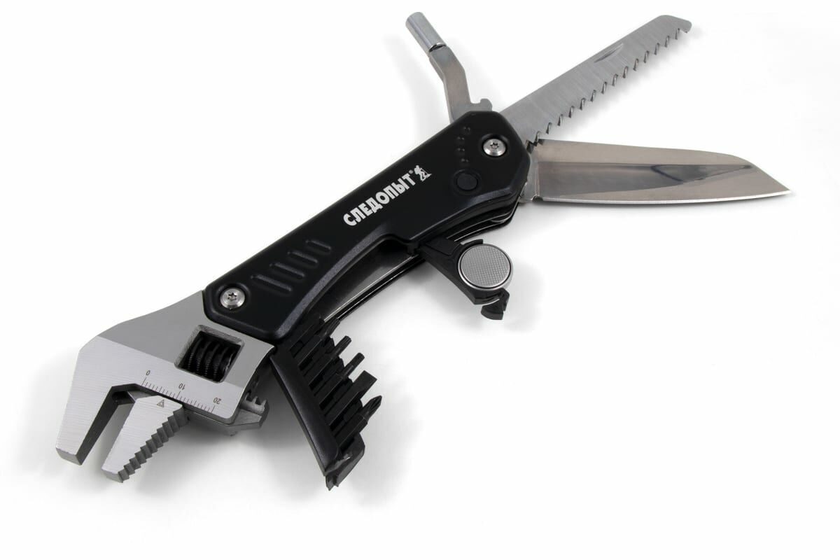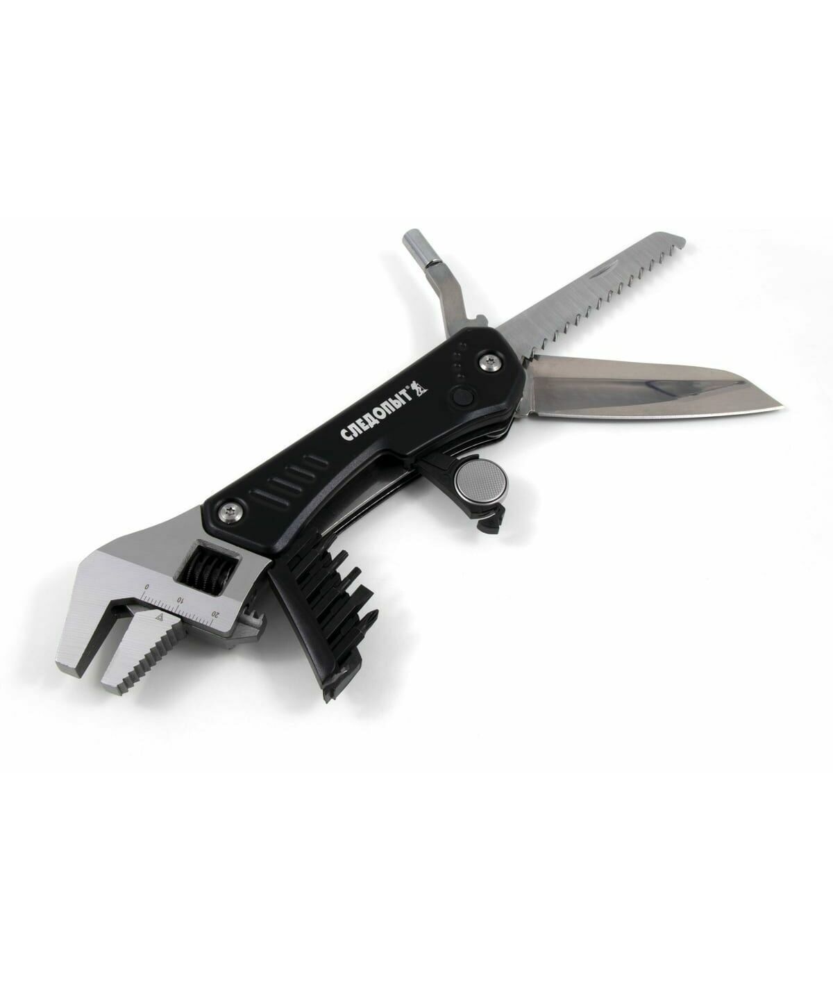В набор входят: нож, пила, отвертка, открывалка для бутылок, плоскогубцы, ножницы и набор бит. Мультитул «Следопыт» URBAN изготовлен из высококачественной стали и оснащен удобным чехлом для хранения и переноски. Благодаря своей прочности и функциональности он станет надежным спутником в любых приключениях.