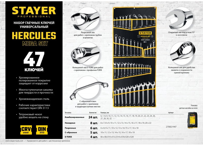 Набор гаечных ключей универсальный STAYER HERCULES 6 - 32 мм 47 шт [27082-H47]