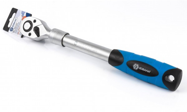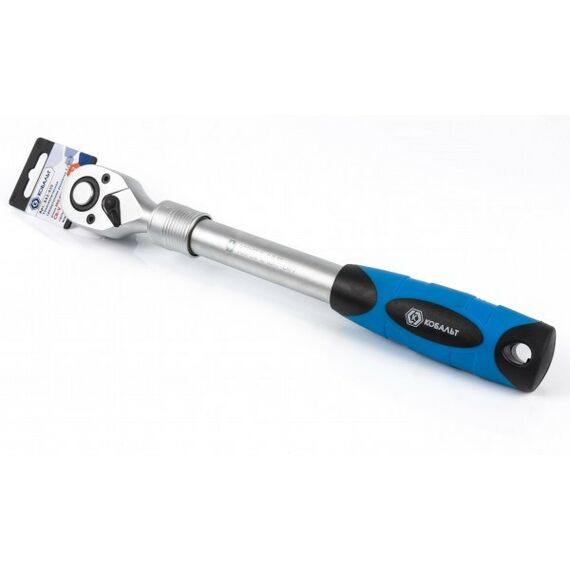 Трещоточная рукоятка Кобальт 642-425 1/2", телескопическая 305 - 445 мм, 72 зуба флажковый переключатель (1 шт.) подвес