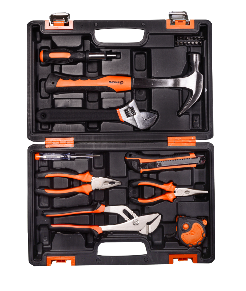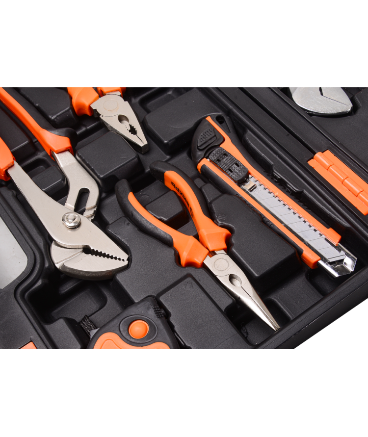 Набор инструментов пригодится дома, на даче, в гараже. Все предметы размещены в ударопрочном пластиковом кейсе.