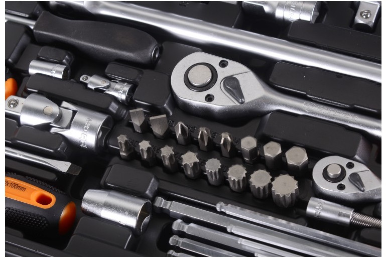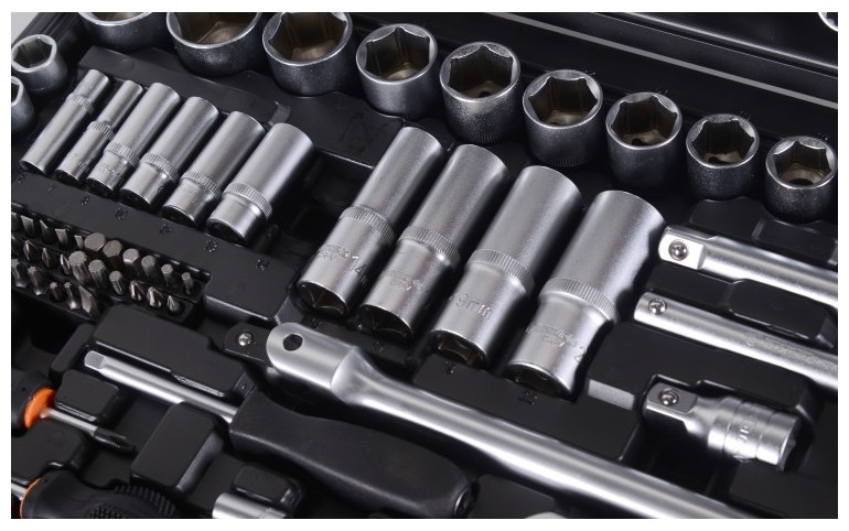 - Материал: Головки и комбинированные ключи: CrV; биты, отвёртки: S2