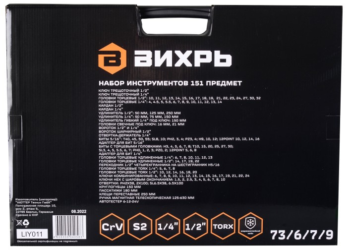Набор инструментов Вихрь 151 предмет 1/2", 1/4", CrV, в кейсе