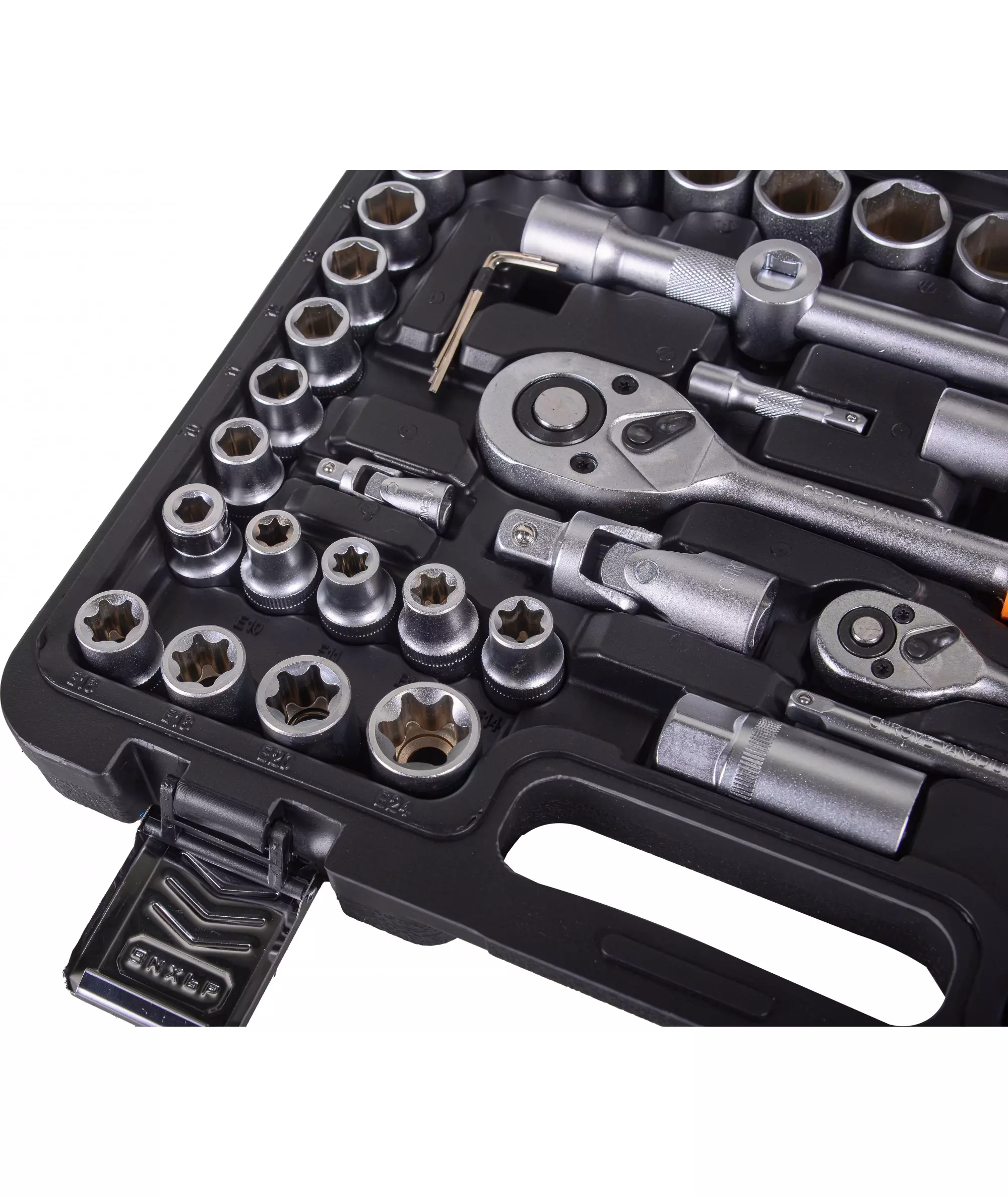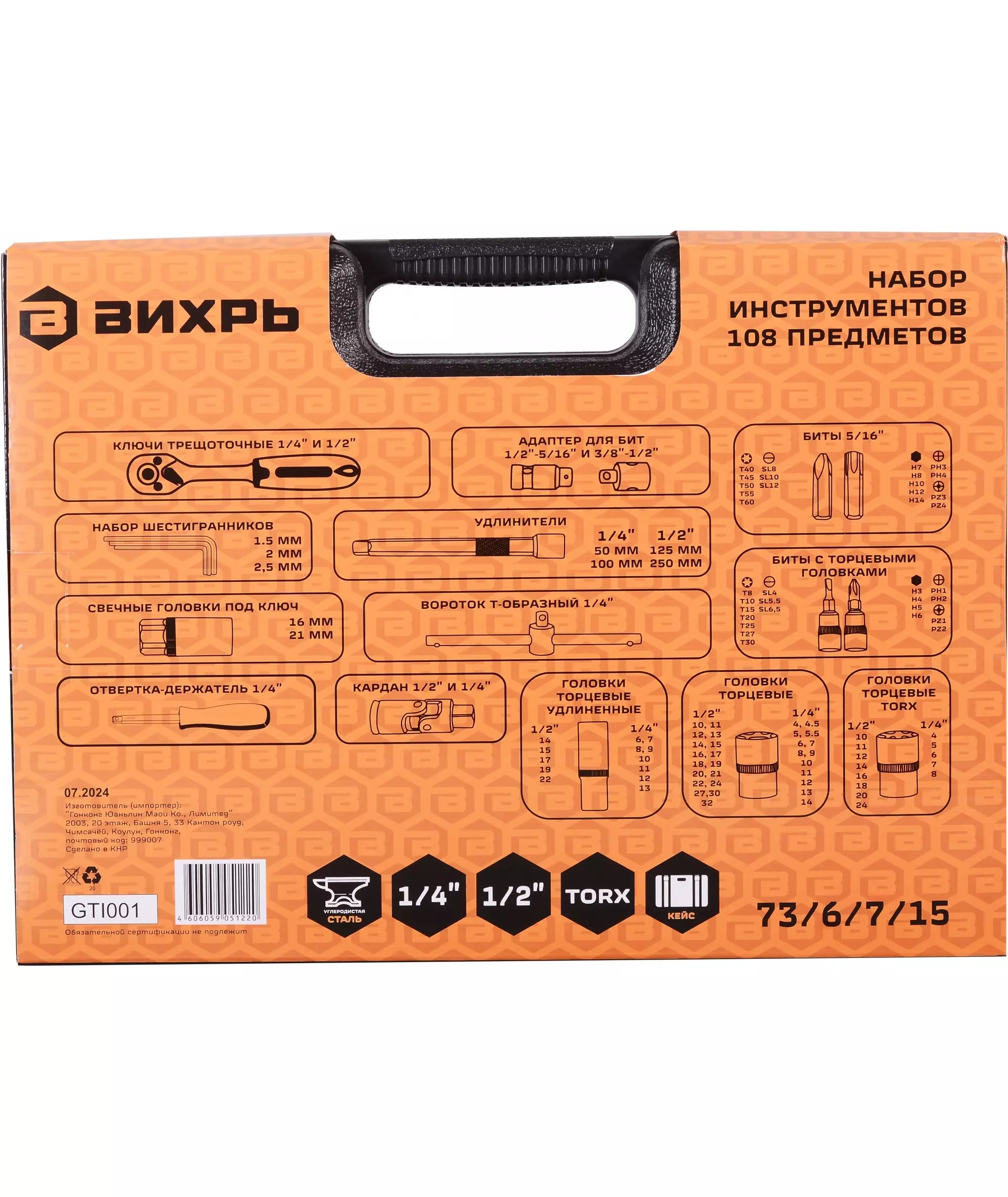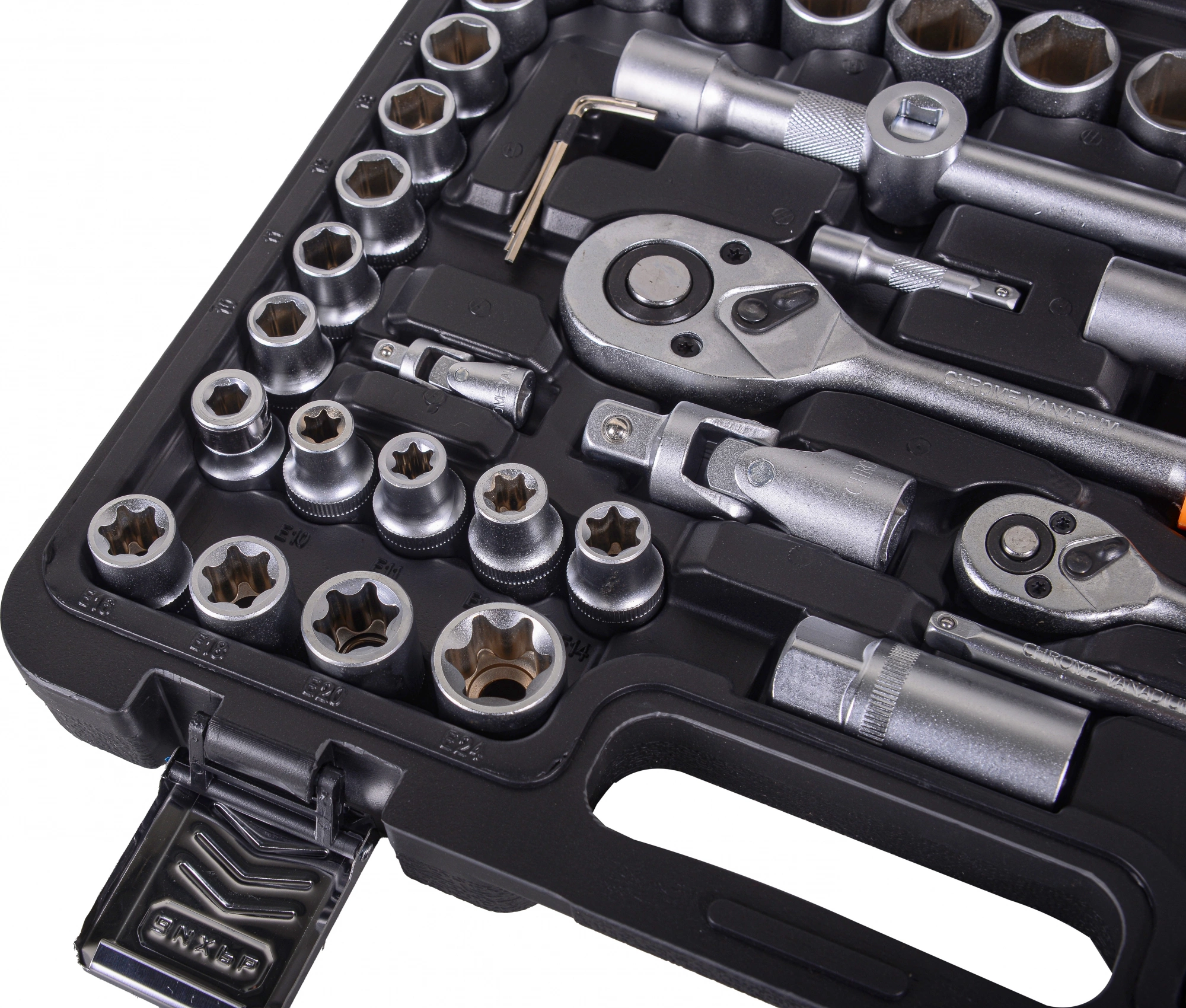 | Дополнительно в наборе, 1 / 2"DR | Удлинители 125, 250 мм.адаптер H5/16, адаптер для бит 5/16", вороток Т-образный, карданный шарнир, трещотка |