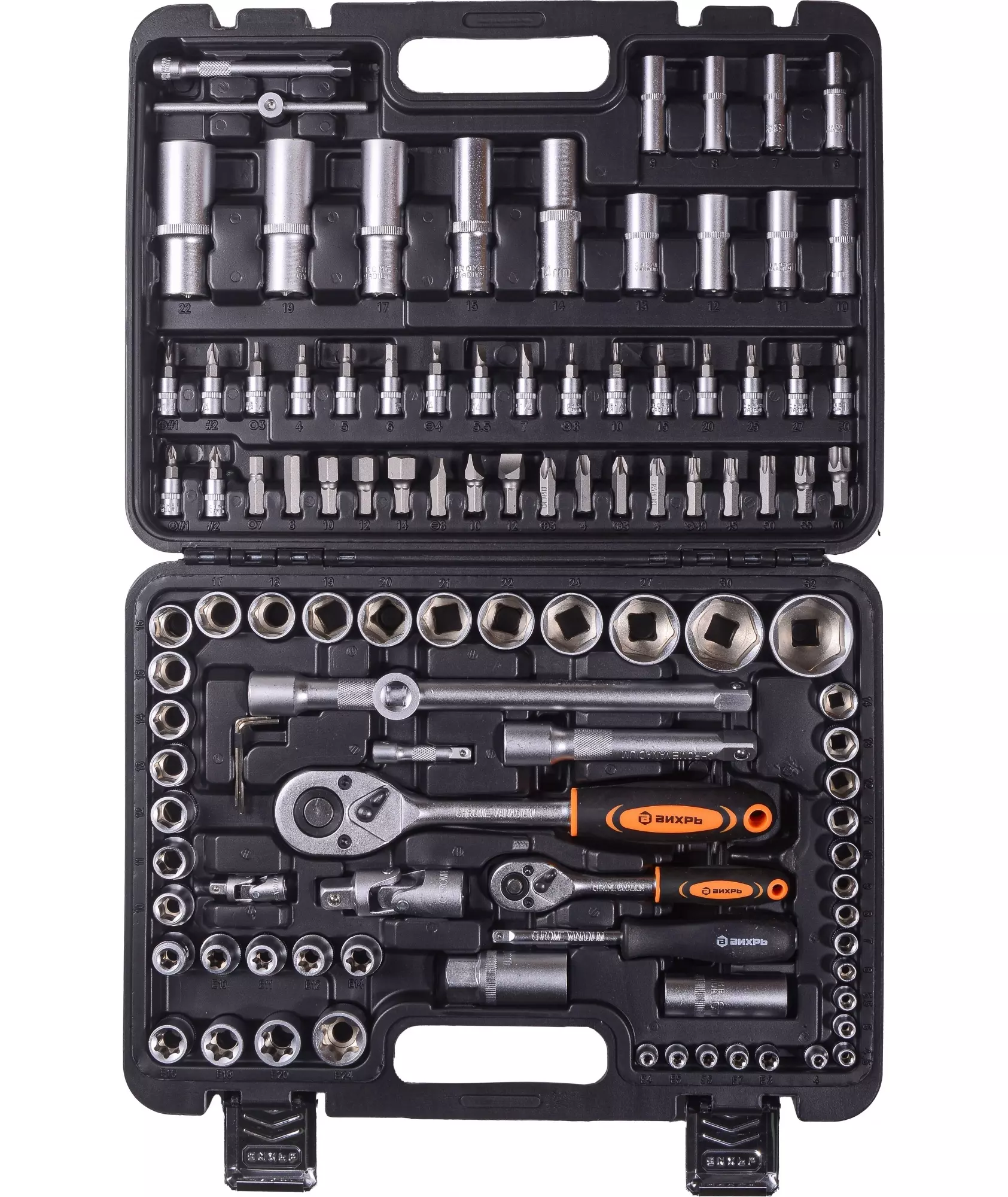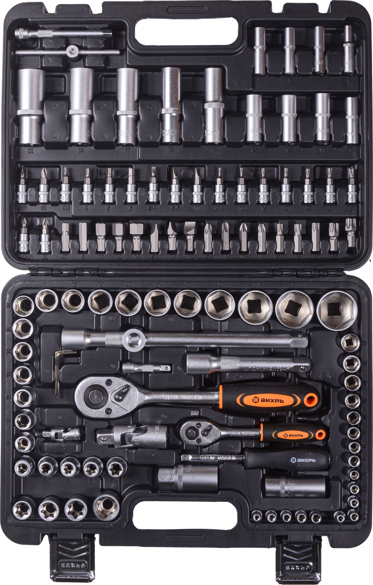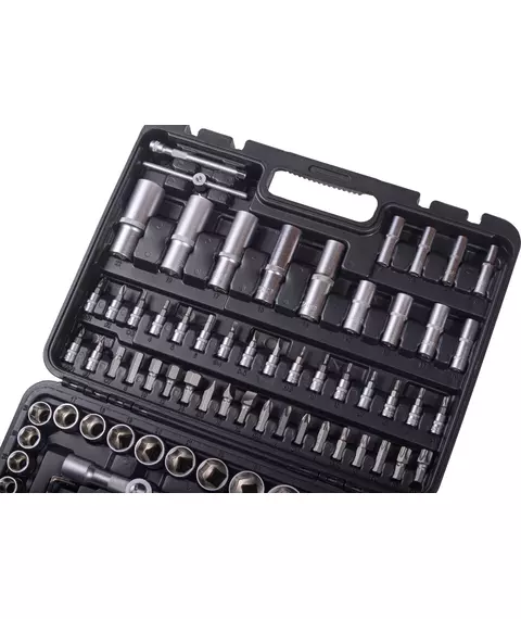 | Дополнительно в наборе, 1 / 4"DR | Удлинители 50, 100 мм.вороток Т-образный, карданный шарнир, отвертка-битодержатель, трещотка |