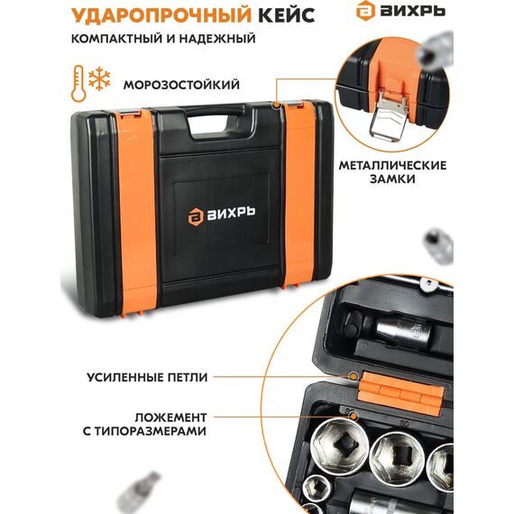 | Дополнительно в наборе, 1 / 2"DR | Удлинитель 1/2": 125, 250 мм.Адаптер: 1/2", 5/16" |