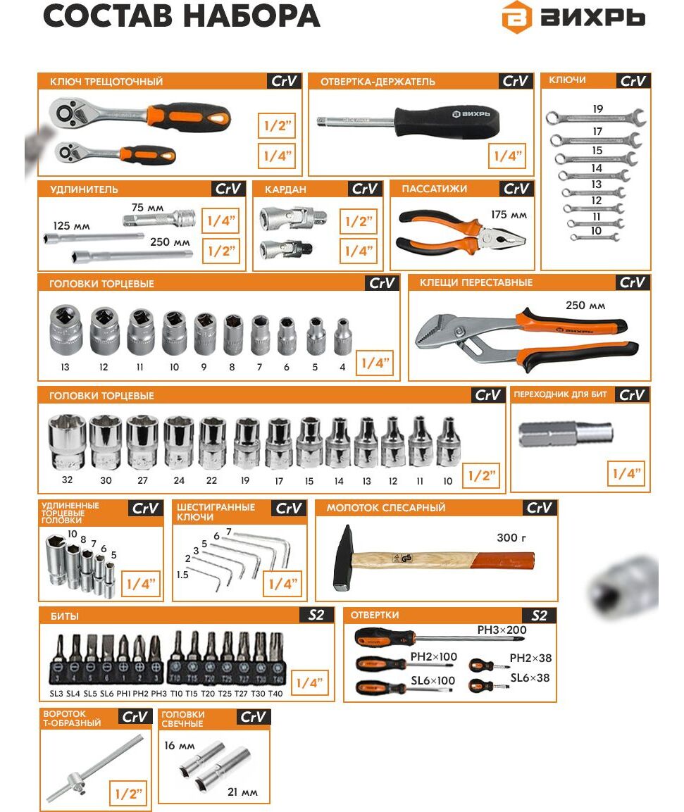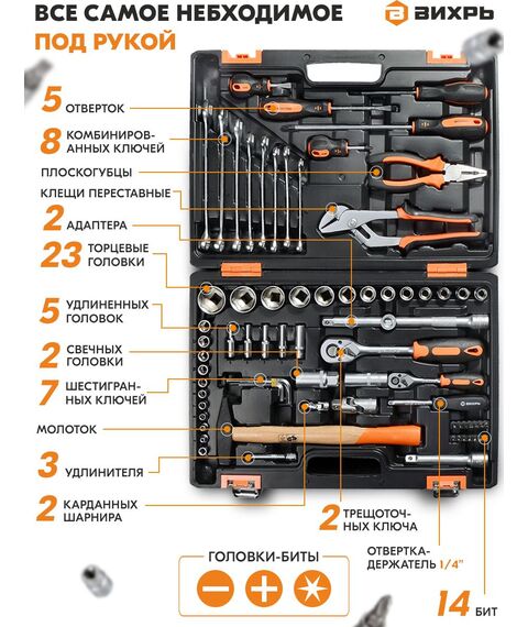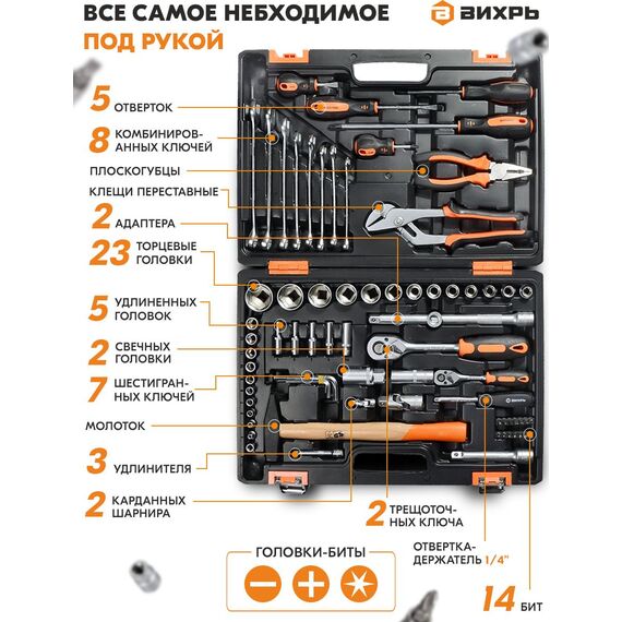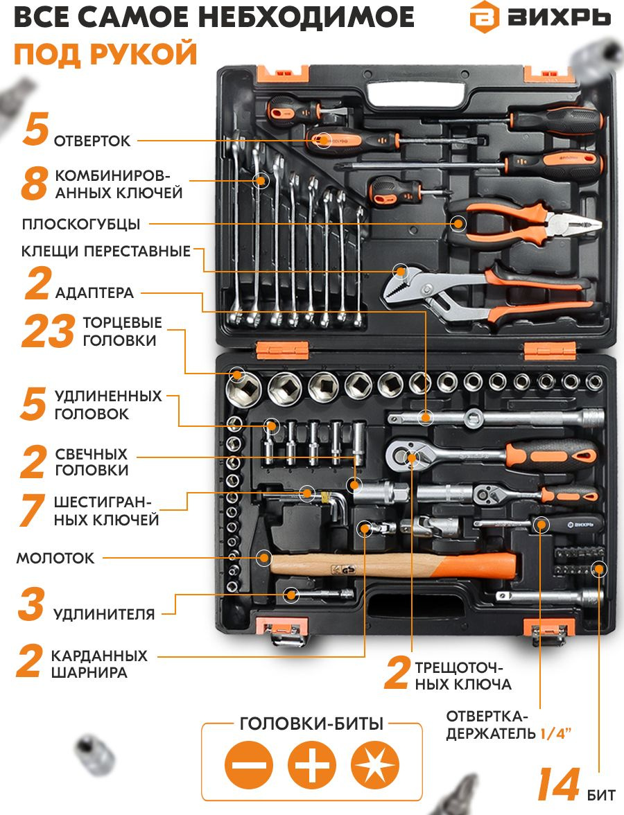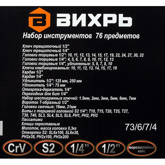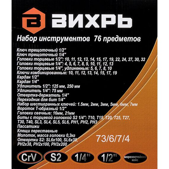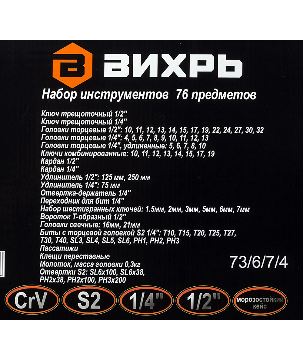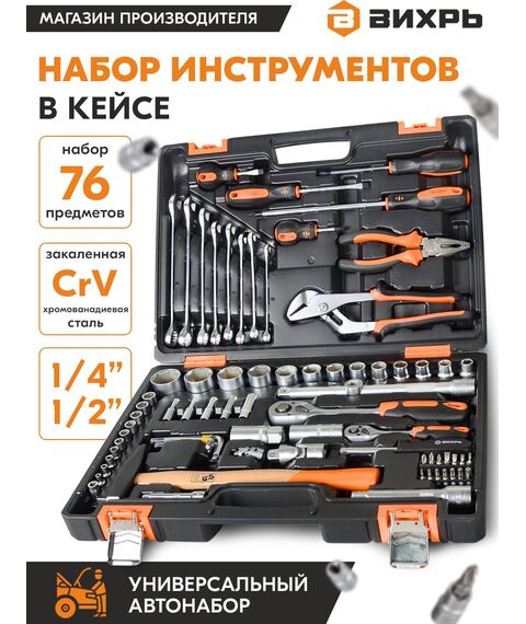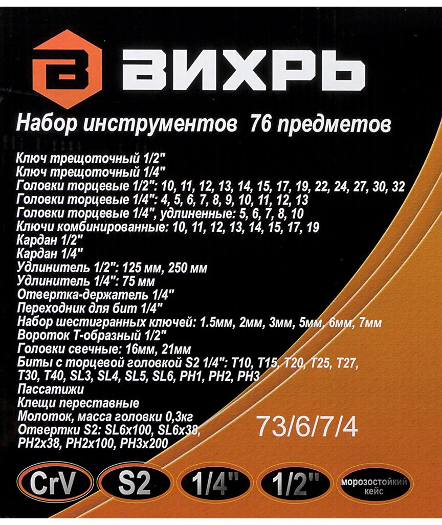 Набор инструментов Вихрь 73/6/7/4 76 предметов, жесткий кейс