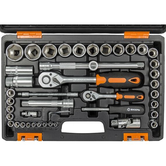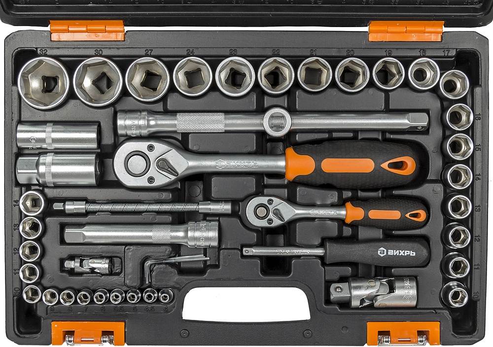 | Головки 1 / 2"DR, список | Головки торцевые 10, 11, 12, 13, 14, 15, 16, 17, 18, 19, 20, 21, 22, 23, 24, 27, 30, 32 ммГоловки торцевые глубокие 14, 15, 17, 19 ммГоловки свечные 16, 21 мм |