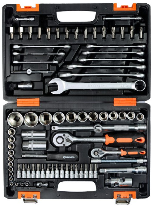 Набор инструментов Вихрь АВТО 82 предмета 1/2", 1/4", CrV, в кейсе [73/6/7/6]