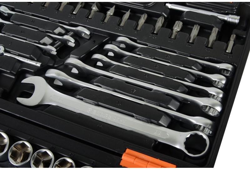 - Инструмент изготовлен в соответствии с международными стандартами. Головки и комбинированные ключи изготовлены из хромованадиевой стали, придающей инструменту высокую твердость и легкость
