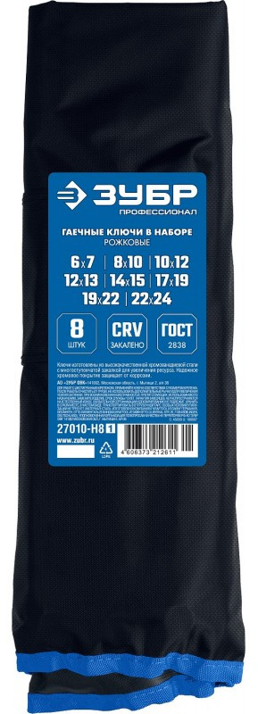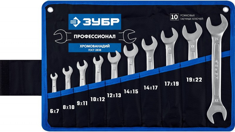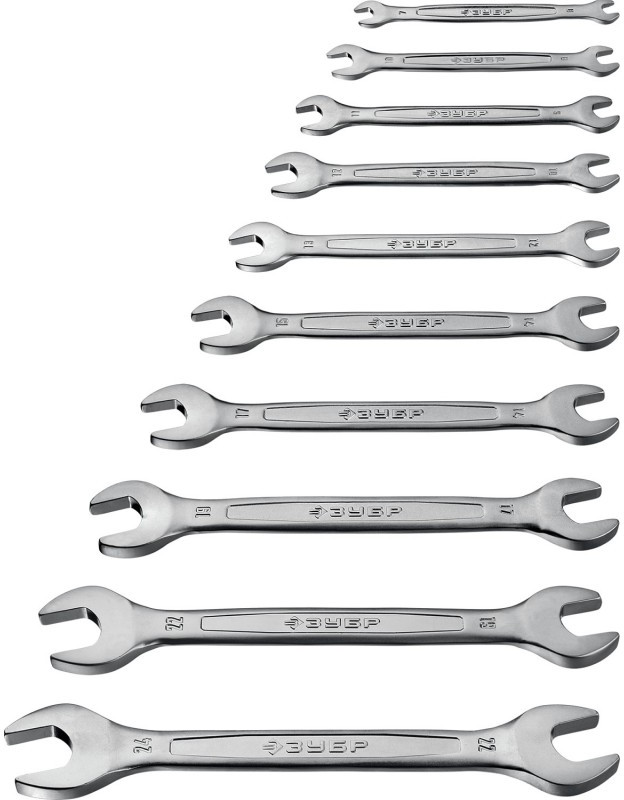 Набор рожковых гаечных ключей Зубр Профессионал 10 шт, 6 - 24 мм [27010-H10]