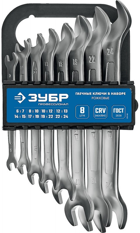 Набор рожковых гаечных ключей Зубр Профессионал 8 шт, 6 - 24 мм [27011-H8]