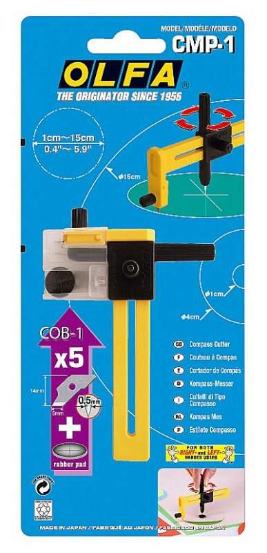 Циркульный резак OLFA CMP-1 идеально подходит для проектов связанных с вырезанием круглых поделок. Используйте резак, чтобы создавать круги из дерева или бумаги с высокой точностью. В ручке хранится 5 дополнительных лезвий. Предназначен для вырезания кругов диаметром от 10 до 150 мм.