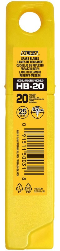 Cегментированные лезвия OLFA OL-HB-20 25 мм, 20 шт, в пластиковом кейсе