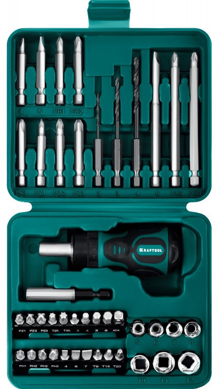 Реверсивная отвертка KRAFTOOL Kompakt-43 с насадками 43 предмета [25556-H43]