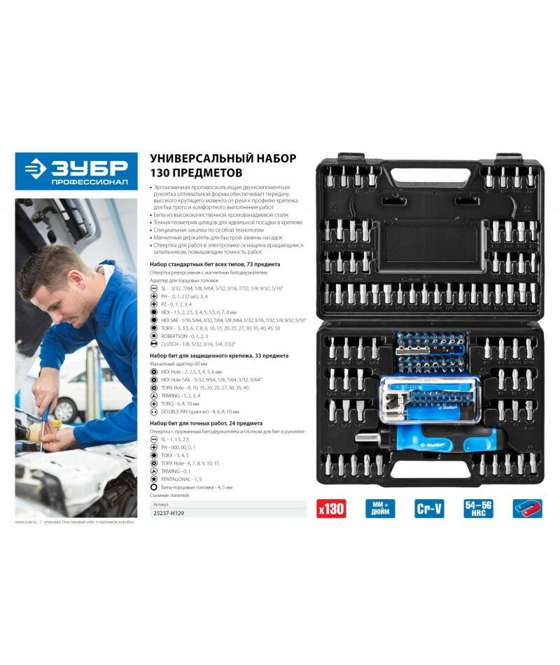 Набор: отвертка реверсивная с насадками Зубр 25237-H129 129 шт