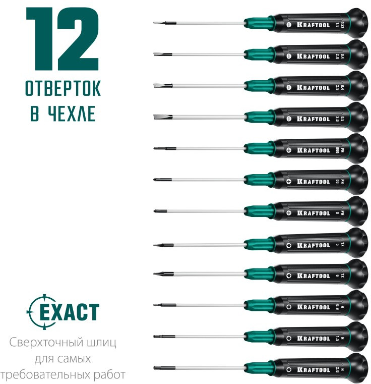 Набор отверток для точных работ KRAFTOOL Precision 12 12 предметов [25689]
