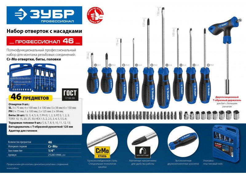 Набор отверток с насадками Зубр Профессионал-46 46 шт [25283-H46_z01]