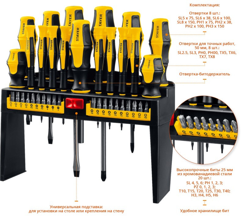 Набор отверток с насадками STAYER Hercules-PRO-37 37 шт [25312-H37]