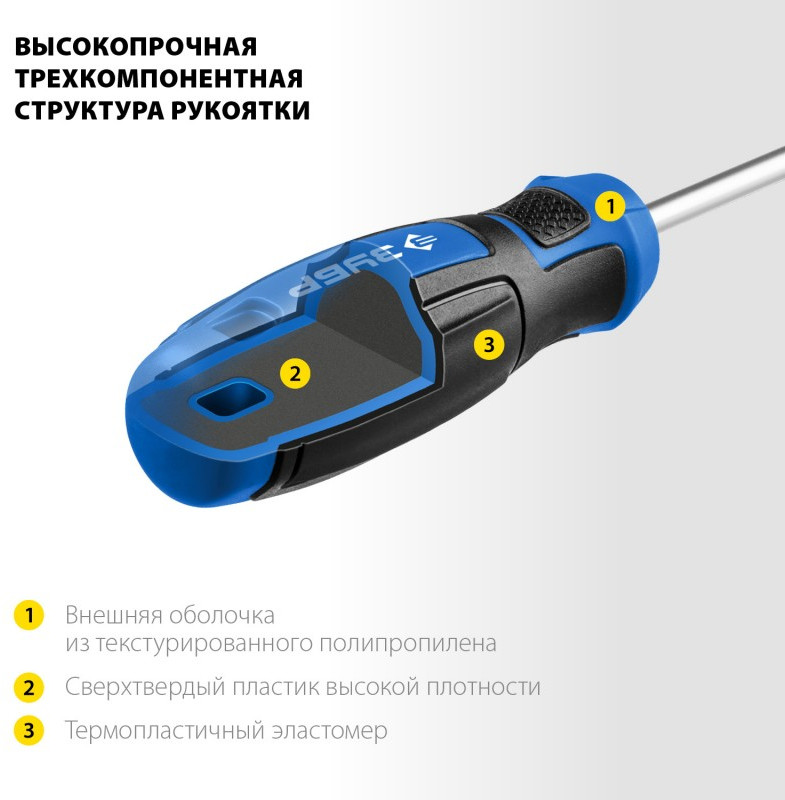 - Мощная трехкомпонентная рукоятка обеспечивает надежный и комфортный хват