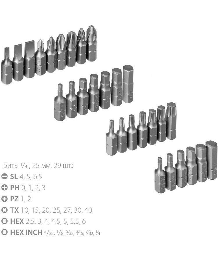 Профессиональный компактный набор с реверсивной отверткой для работы как с ручным так и с электроинструментом