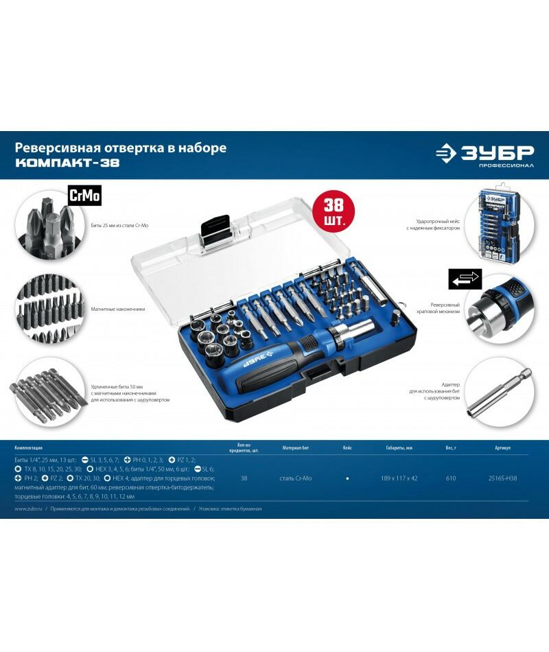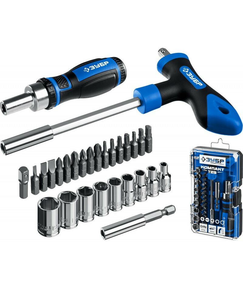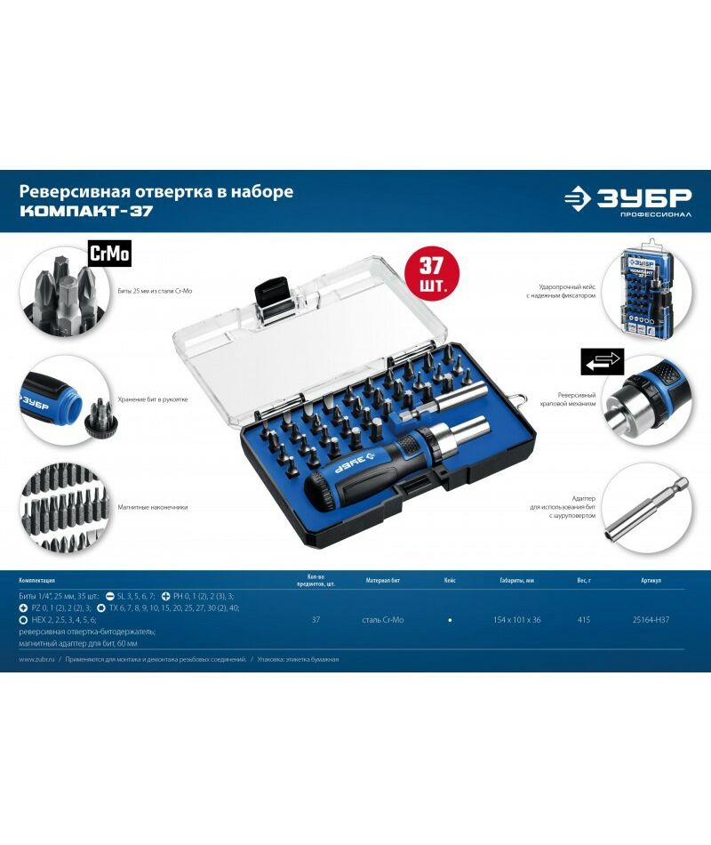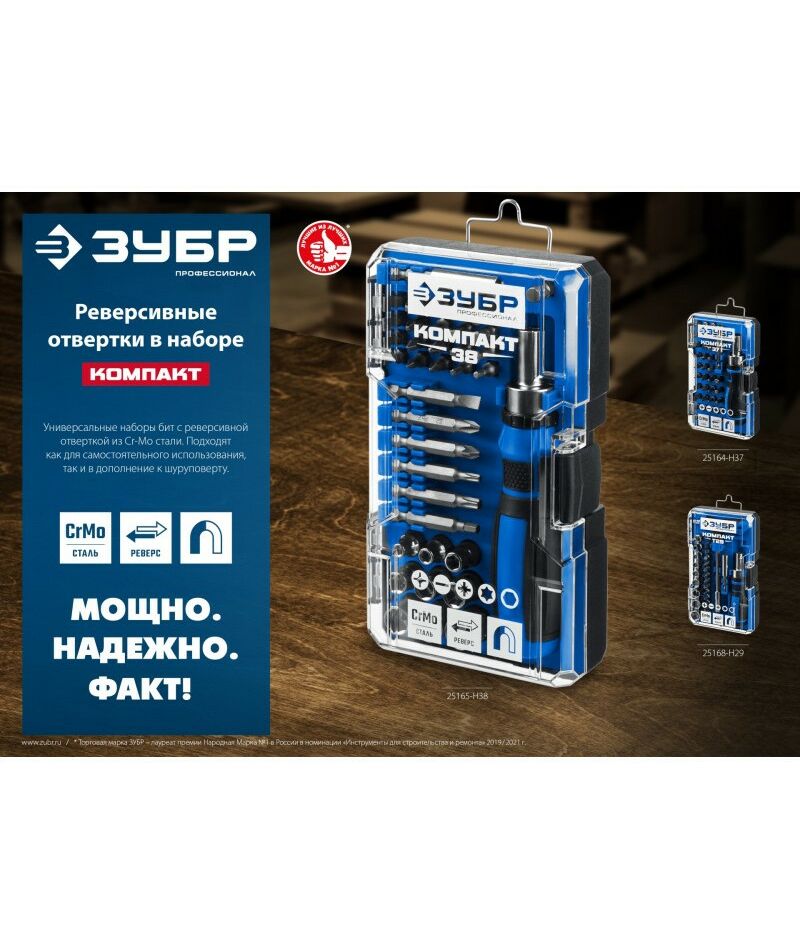 Реверсивная отвёртка с насадками Зубр Профессионал Компакт-Т29 29 предметов [25168-H29]