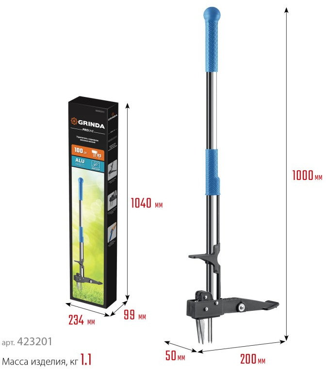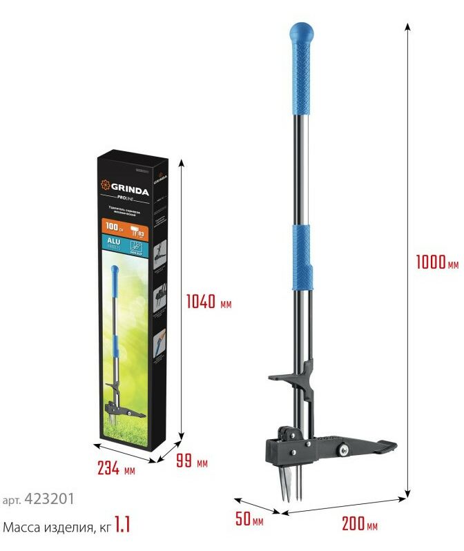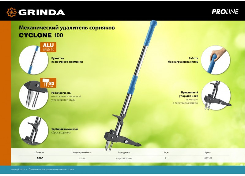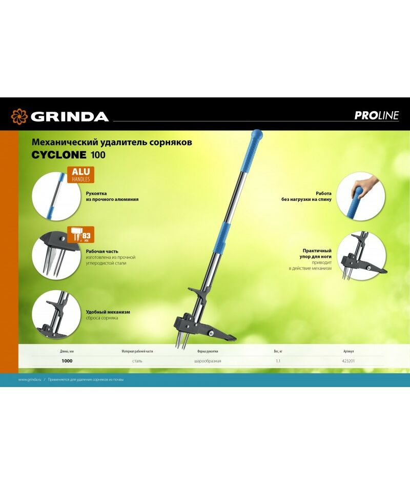 Механический удалитель сорняков GRINDA PROLine CYCLONE-100 длина 1000 мм, алюминиевый корпус, оксидированное покрытие [423201]