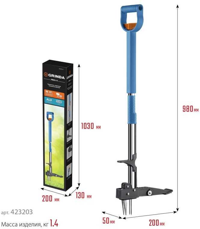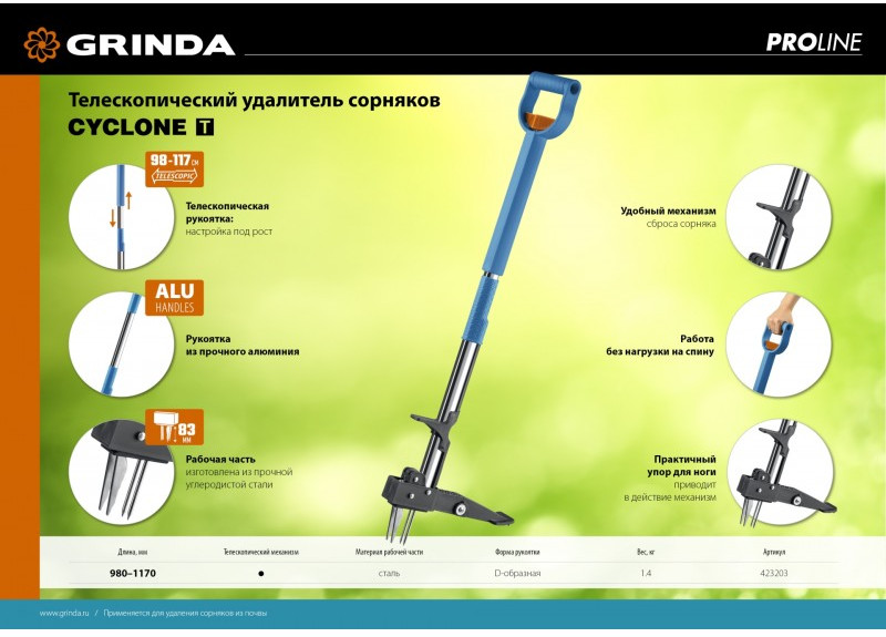 Телескопический удалитель сорняков GRINDA PROLine CYCLONE-T длина 980 - 1170 мм, алюминиевый корпус, пластиковая D-образная рукоятка [423203]