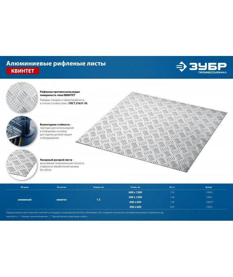 Описание Зубр Квинтет 600х1200 х1.5 мм