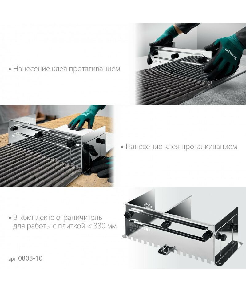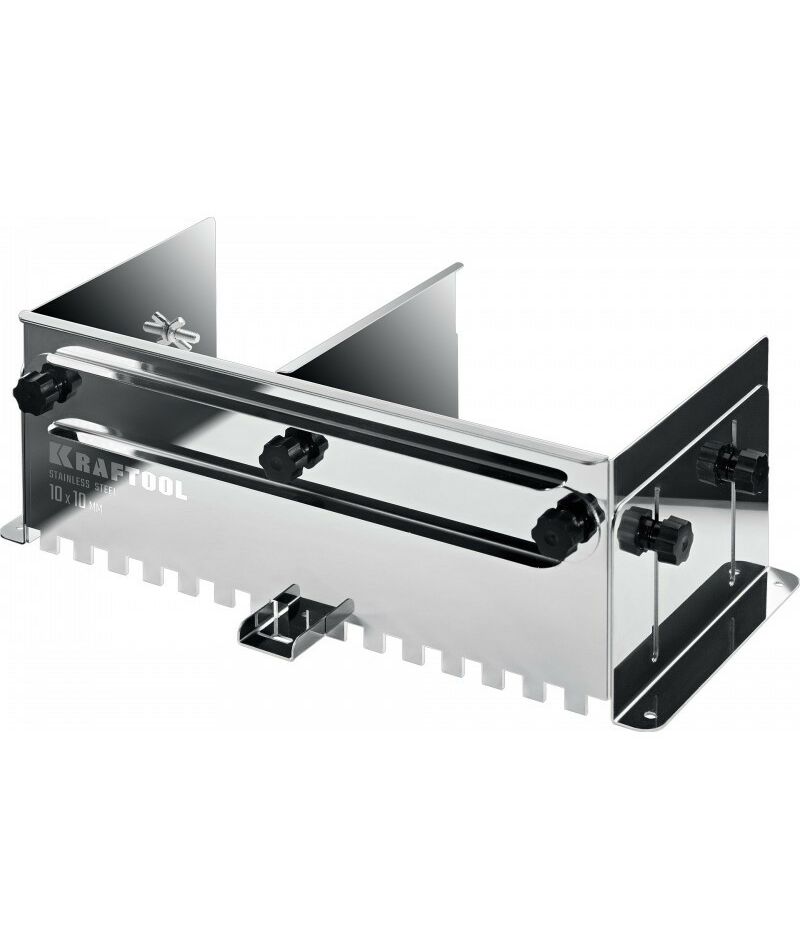 Предназначена для быстрой работы с большим объемом работ по укладке плитки шириной до 600мм. Сделана из стали AISI 430, благодаря которой гребенка обладает повышенными эксплуатационными характеристиками. Имеет величину зуба 10мм. Боковые регуляторы помогут закрепить гребенку на рабочей поверхности и настроить её по высоте под любую плитку. В комплекте имеется дополнительная секция, благодаря которой гребенку можно использовать даже с самыми узкими плитками. Легко моется, не боится влаги.