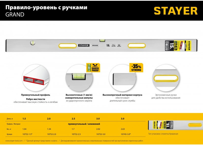Наличие товара STAYER GRAND 2 м [10752-2.0]