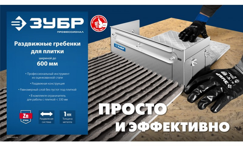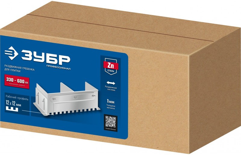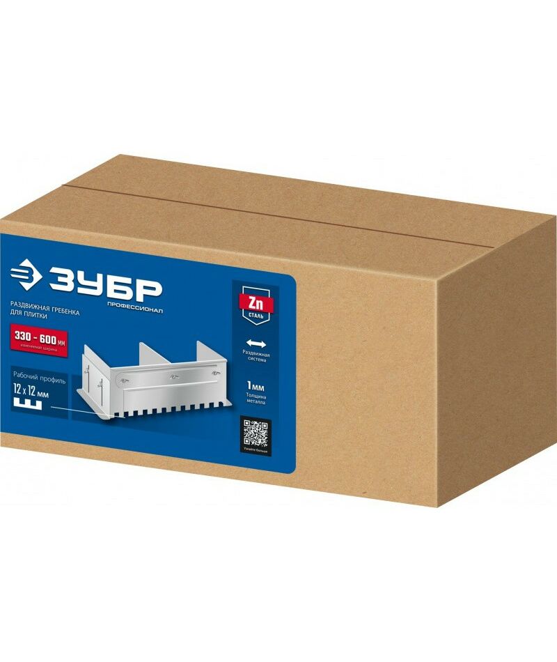 Раздвижная гребенка для плитки Зубр Профессионал зуб 12*12 мм до 600 мм, оцинкованная сталь [08045-12]